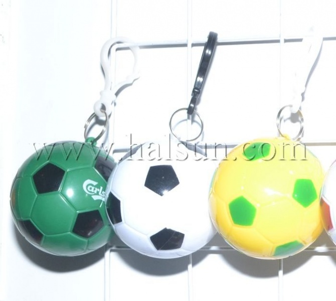 Disposable raincoats in balls with key rings are perfect for outdoor promotional use. Especially your products involves in outdoor sports, travelling, touring. Disposable raincoats in balls with key rings can be used in many areas, especially for outdoor evens and sports. We can printed logo on surface of plastic ball. So even it’s not rain, your logo will shown to many people. And we think it’s more important to print logo on plastic ball rather than on raincoats itself, as plastic ball have more chance of exposure. When the disposable raincoat is used, it’s normally throw away. But people will put the plastic ball in their bags for quiet a long time to prepare for the rain.